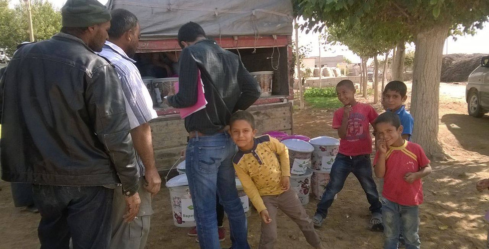 配布日当日には対象村の周辺からも多くのシリア人の人々が集い、笑顔で配布物を抱えて家々に持ち帰っていました。